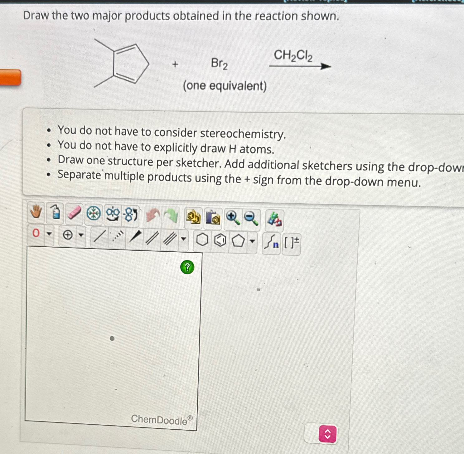 Draw The Two Major Products Obtained In The Reaction Shown Ch2Cl2 Br2 (One Equivalent) You Do Not Have To Consider Stereochemistry You Do Not Have To.
